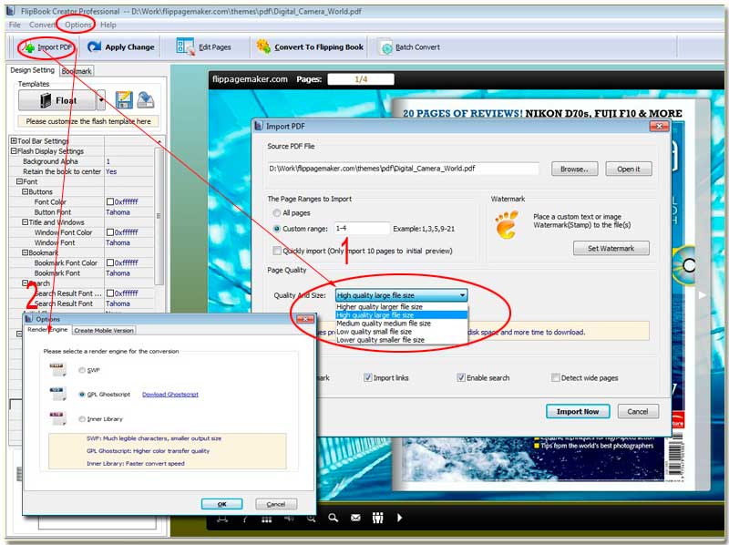 Step1: Start your flipbook maker, and import a PDF by click the icon of Import PDF, on the pop-up window, you have to find the option of Page Quality (it is located on the middle-left).